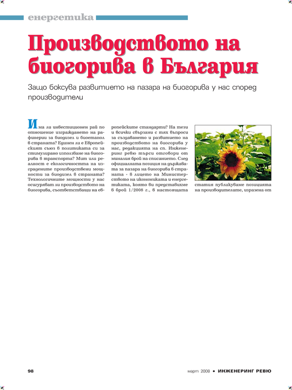 Въпреки високите цени на суровините и липсата на търсене в България все повече компании инвестират в екорафинерии (2007)